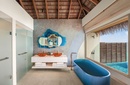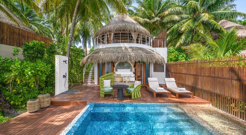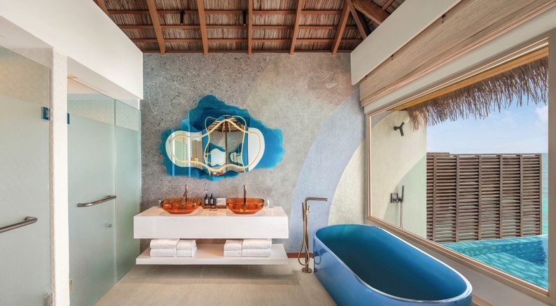 Студия Miaja Design Group преобразила каждую из 77 вилл курорта. Дизайн водных вилл вдохновлен грациозными формами китовых акул, а пляжные виллы воспевают красоту мангровых зарослей. Особого внимания заслуживают Supreme Overwater Two-Bedroom Villas и Oasis Overwater Two-Bedroom Villas с панорамными бассейнами и уединенными террасами, а также эксклюзивная Oasis Two-Bedroom Beach Villa с водной горкой, соединяющей верхний уровень с собственным бассейном.